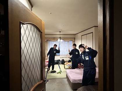 起床時刻になりました。担当の先生に声をかけられて、1日がスタートしています。2日間のスキー実習により、少し眠そうな雰囲気を感じましたが、笑顔を見せてくれています。今日も頑張っていきます!
