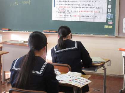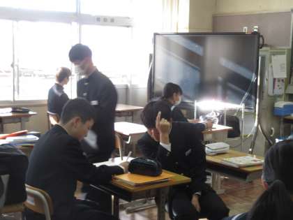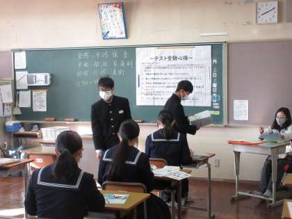 2年生の朝の教室の様子の続きです。となりのクラスでもよい1日のスタートがきれているようです!友達とのテスト前の確認ができ、よい時間になっています。