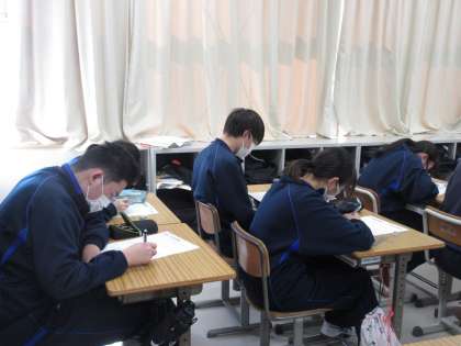 1・2年生は3時間目までテストのため、3年生の3時間目の授業風景をお伝えます。