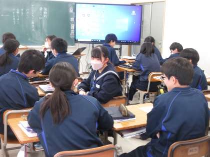 2月13日(火)今日の授業風景 その2 公開日 2024/02/13 更新日 2024/02/13 お知らせ 3年生の道徳科の授業です。 教材「カーテンの向こう」を活用し、一人一人の考えを引き出しながらの学習に取り組んでいました。自分の考えを積極的に発言する姿、グループの仲間と熱心に話し合う姿が、今日も3年生の教室で見られています。