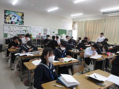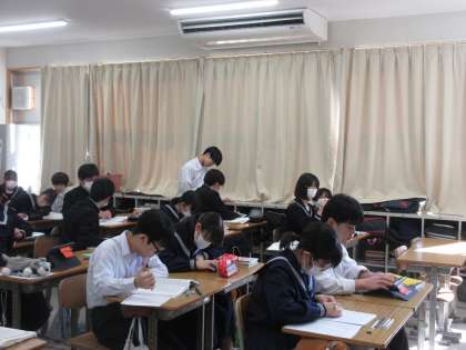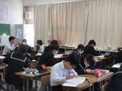 2月13日(火)今日の授業風景 その3 公開日 2024/02/13 更新日 2024/02/13 お知らせ 3年生の社会科の授業です。 受験対策の学習に取り組んでいました。落ち着いた雰囲気の中、一人一人の課題に向かって努力する3年生の生徒たちです。