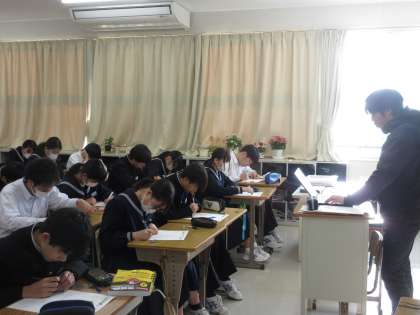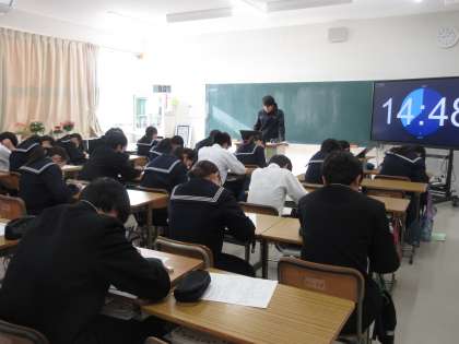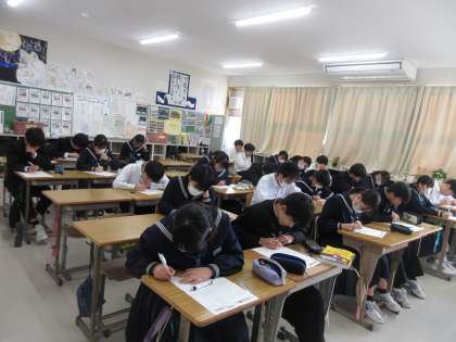 2月15日(木)今日の授業風景 その6 公開日 2024/02/15 更新日 2024/02/15 お知らせ 3年生の数学科の授業です。 受検対策のプリントに集中して取り組む3年生。今日も、しっかりと受検に向けた積み上げをしていました。全員で、目標に向かって頑張っています!