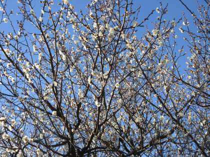 ここ数日の暖かさに誘われ、梅の花が八分咲きになっています!