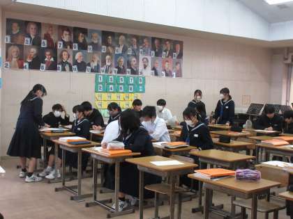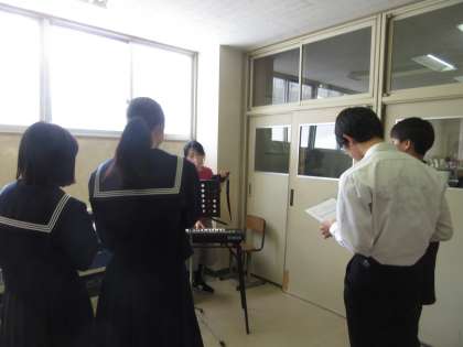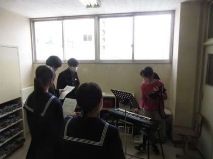 2月19日(月)今日の授業風景 その1 公開日 2024/02/19 更新日 2024/02/19 お知らせ 3年生の音楽科の授業です。 グループで作り上げた「思い出の曲」を担当の先生と確認していました。自分たちが工夫したところや思いなどを大切にしながら、最終仕上げに取り組んでいました。少し聴かせてもらいましたが、すてきな「思い出の曲」に仕上がっていました!