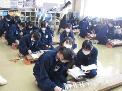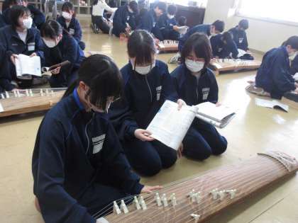 2月20日(火)今日の授業風景 その4 公開日 2024/02/20 更新日 2024/02/20 お知らせ 1年生の音楽科の授業です。 琴の演奏も上手になってきました。今日は「さくら さくら」をみんなでそろえて演奏。春を感じるすてきな音楽が、音楽室全体に広がっていました!