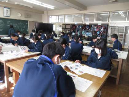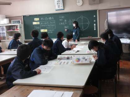 2月20日(火)今日の授業風景 その7 公開日 2024/02/20 更新日 2024/02/20 お知らせ 2年生の美術科の授業です。 「形と色の構成」をテーマに学習をしていました。今日の授業の最初は、テスト返しから。資料を見ながら、色の構成について再確認する生徒たち。今日も集中しています!