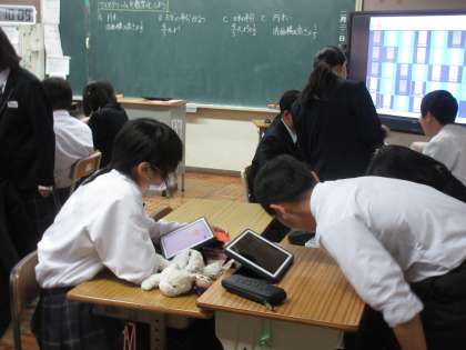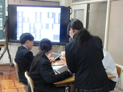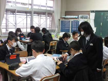 「アイスクリームを数学科しよう」というテーマのもと、学習を進めています。円すいや半球の体積の求め方を活用しながら、本時のテーマに迫っていました。積極的に友達と意見交換をしながら活動をする姿を見て、嬉しく感じました。