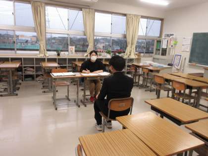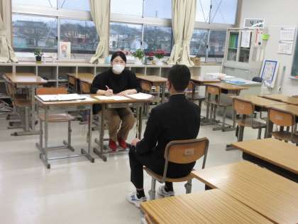 2月21日(水)放課後の様子【3年生面接練習】 公開日 2024/02/21 更新日 2024/02/21 お知らせ 3年生は、放課後に面接練習に取り組んでいる生徒がいます。これまで自分なりに面接の準備をしてきた生徒たち。様々な質問に、しっかり自分の考えを表現する姿が見られました。最後までしっかり頑張る3年生の生徒たちです!