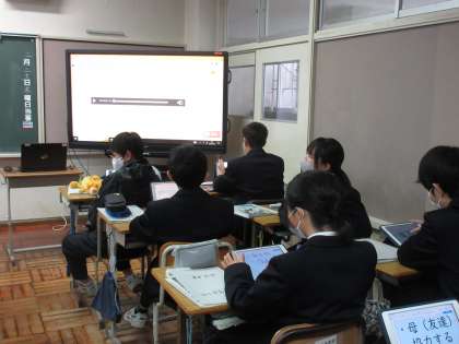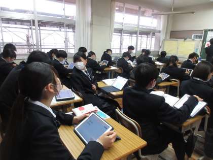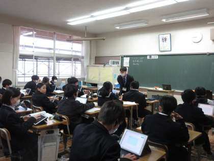 2月22日(木)今日の授業風景 その1 公開日 2024/02/22 更新日 2024/02/22 お知らせ 1年生の道徳科の授業です。 「つきあうとはどういうことか?」というテーマで話し合う生徒たち。道徳の授業の導入で自分たちの考えを出し合う生徒たち。異性どうしでは?、いや同性どうしでもあり得るなど活発に意見が交流されていました。この後、道徳の教材等を活用しながら、さらに考えを広げていくことでしょう。
