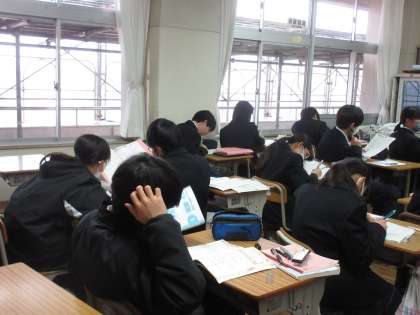 2月22日(木)今日の授業風景 その2 公開日 2024/02/22 更新日 2024/02/22 お知らせ 1年生の数学科の授業です。 数学プリントの解決にチャレンジする生徒たち。自然に近くの友達と学び合う姿がいいです!今日も、自分の力で、また、友達と協力して問題の解決に全力を尽くす生徒たちです。