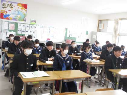 2月26日(月)朝の教室の様子 その3 公開日 2024/02/26 更新日 2024/02/26 お知らせ 3年生の各教室では、落ち着いた雰囲気で今週のスタートを切れているように感じました。いよいよ、受検という大きな山が近づいてきています。全員で乗り越えていくことができるように見守ってまいります。