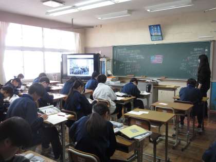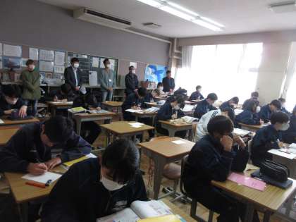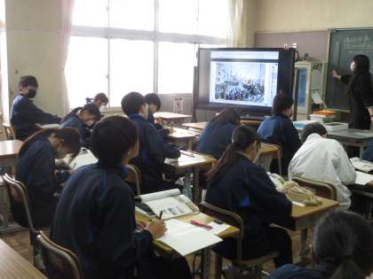 2月26日(月)今日の授業風景 その1 公開日 2024/02/26 更新日 2024/02/26 お知らせ 2年生の社会科の授業です。 (学校運営協力員の皆様にも授業を見ていただきました。) 「アメリカ社会はどのように変化したのだろう」というテーマのもと、学習を進めていました。電子黒板に映し出された画像や年表を活用しながら学習をする生徒たち。アメリカ合衆国の成り立ちへのイメージが広がっていました。