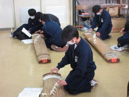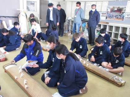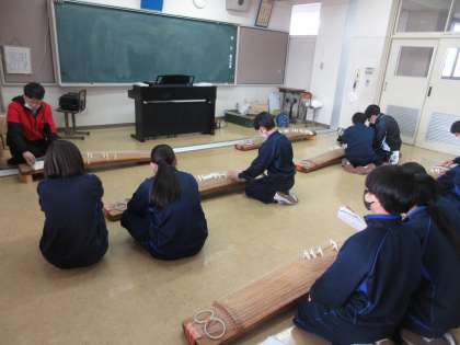 2月26日(月)今日の授業風景 その4 公開日 2024/02/26 更新日 2024/02/26 お知らせ 2年生の音楽科の授業です。 (学校運営協力員の皆様にも授業を見ていただきました。) 「さくら さくら」の琴の演奏に全員で揃えて取り組む生徒たち。春を感じさせるすてきな琴の演奏が今日も広がる音楽室です。演奏が終わった後、自然にクラスみんなで拍手が起こるところがいいですね!