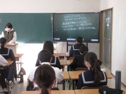 2月27日(火)朝の教室の様子 その1 公開日 2024/02/27 更新日 2024/02/27 お知らせ 3年生の朝の教室の様子です。 明日に茨城県立高校の受検を控え、生徒たちは緊張していると思いますが、担任の先生から温かい励ましの言葉をいただいていました。これまでの積み重ねを明日、思い切り発揮してきてほしいです!