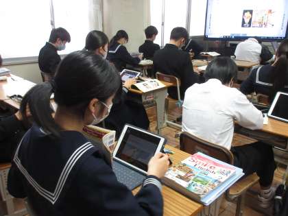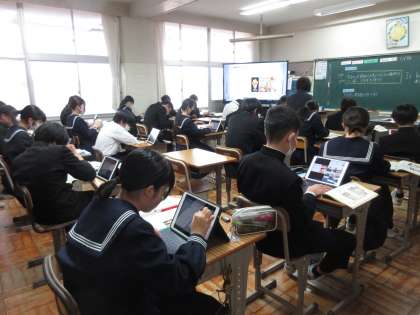 3月5日(火)今日の授業風景 その6 公開日 2024/03/05 更新日 2024/03/05 お知らせ 2年生の英語科の授業です。 「守谷のおすすめの場所をいつ探しスライドにする」というテーマのもと学習を進めています。自分のお気に入りの場所の「とっておきの情報」や「有名なこと」を英語でメモしながら、スライドの作成を進める生徒たち。一人一人、工夫したスライドの完成を目指して頑張っていました。