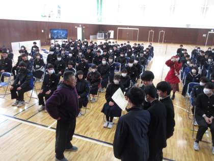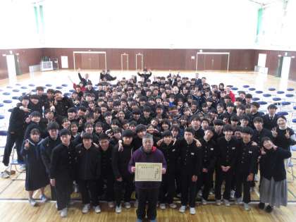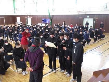 3月7日(木)3年生サプライズ企画 公開日 2024/03/07 更新日 2024/03/07 お知らせ さすが、素敵な3年生です。予行と表彰が終わった後に、「ちょっと待った!」の声。 何かと思っていたら、還暦を迎える先生への感謝状贈呈式を企画してくれていました!心温まる企画に、心がジーンとさせられました! 全員で撮った写真。みんなの笑顔が素敵で、輝いています!