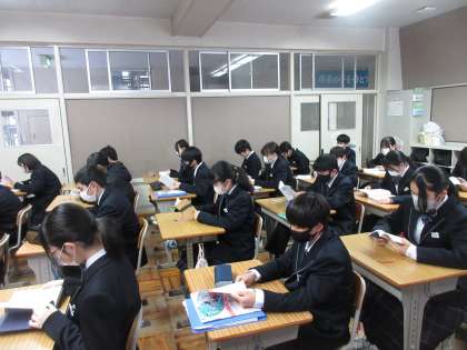 3月8日(金)朝の教室の様子【1年生】 公開日 2024/03/08 更新日 2024/03/08 お知らせ 1年生の教室の朝の様子も見に行くと、しっかり読書に取り組む姿が・・・。もう、後輩を迎える準備が整い始めているように感じます!落ち着いて1日のスタートを切る1年生です。