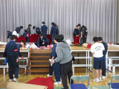 体育館での準備の続きです。一人一人、頑張ってくれています!