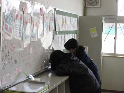 卒業生の教室の準備も進められています。1年生の生徒たちが工夫をして、飾り付けを進めていました。感謝の気持ちを込め、準備にも力が入ります。