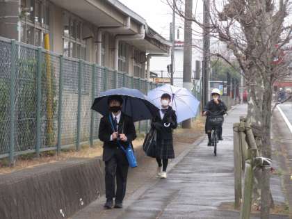 3月12日(火)朝の様子 公開日 2024/03/12 更新日 2024/03/12 お知らせ 小雨の降る寒い朝を迎えています。今日から、1年生・2年生のみの登校です。少しさみしい気もしますが、修了式までの2週間、令和6年度に向けた準備をしっかり行っていきたいと思います。今日から、新しいスタートと思って、頑張っていきます!応援よろしくお願いします。
