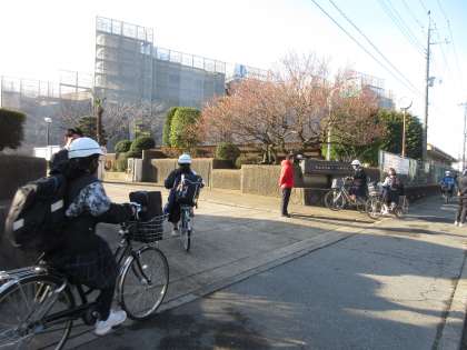 今日は、3年生の先生方が正門に立って生徒を迎えてくれていました。全職員で生徒たち一人一人を見守る体制を大切にしていきたいと考えています。