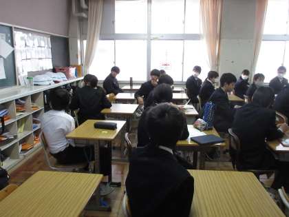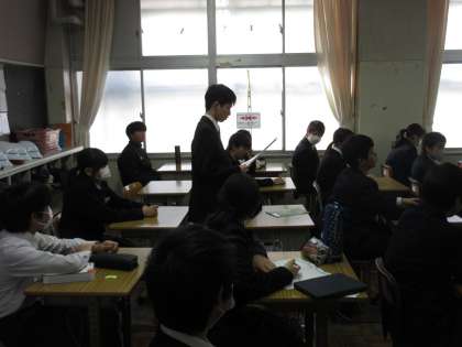 朝の会の時の1年生の教室の様子です。委員会や係からの連絡を進んで行う生徒たち。自分の役割を大切にしてやりとげる姿を見て、嬉しく感じました!今日も頑張る1年生の生徒たちです。