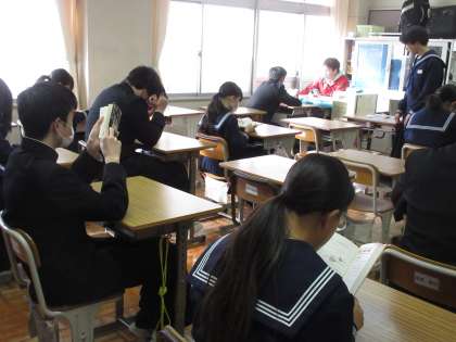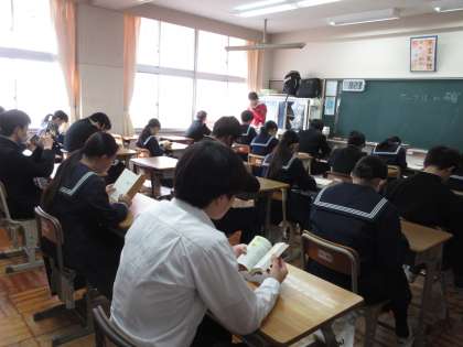 3月13日(水)朝の教室の様子【2年生】その3 公開日 2024/03/13 更新日 2024/03/13 お知らせ 2年生の朝の教室の様子です。ヘルメットの置き方が素晴らしいです!気持ちのよい環境に中で、「朝読書」の時間を大切にする2年生。今日も、1日のよいスタートを切ることができています。今日も生徒たちと一緒に、頑張ってまいります!