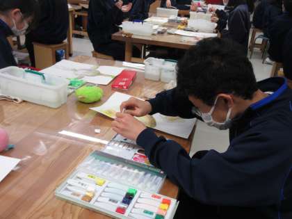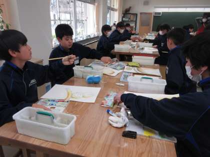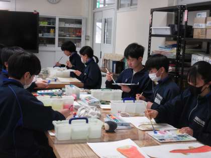 3月13日(水)今日の授業風景 その3 公開日 2024/03/13 更新日 2024/03/13 お知らせ 1年生の美術科の授業の様子をもう1ページ、お伝えします。 色の塗り方を工夫しながら、作業を進めていました!
