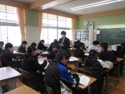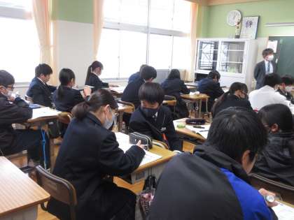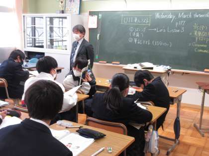 3月13日(水)今日の授業風景 その6 公開日 2024/03/13 更新日 2024/03/13 お知らせ 1年生の英語科の授業です。 英会話の文章を読み、問題に答える活動をしていました。近くの友達と考えを交流したり確認したりし合いながら、根気強く問題の解決に取り組む生徒たち。みんなでやり遂げていこうという雰囲気の中、今日も頑張る生徒たちの姿がたくさん見られました!