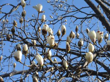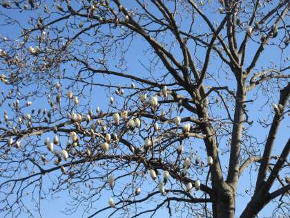 本校駐車場付近にある「ハクモクレン」。つぼみがだいぶ膨らみ、少しずつ花が咲きつつあります。春が一歩一歩、近づいてきているなと感じさせられます。