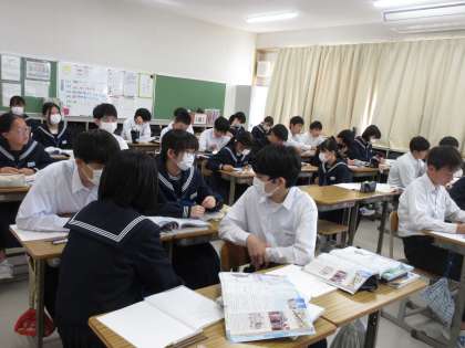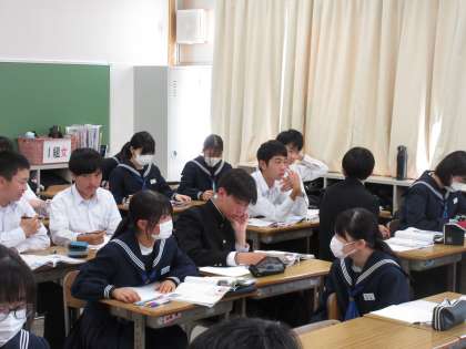 4月15日(月)今日の授業風景 その8 公開日 2024/04/15 更新日 2024/04/15 お知らせ 3年生の社会科の授業です。 「日清・日露戦争と近代産業」をテーマに学習を進めています。不平等条約の改正が、なぜ必要なのか、近くの友達と考えを出し合う生徒たち。日本の近代化に向けた日本の歴史上の動きへのイメージを広げていました。