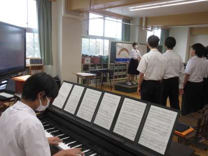 10月1日(火)今日の授業風景 その2 公開日 2024/10/01 更新日 2024/10/01 お知らせ 3年生の音楽科の授業です。 合唱練習に取り組む3年生の生徒たち。音楽室全体に広がる素敵な歌声!昨日のリハーサルを通して、さらにパワーアップしているように感じました。素敵な歌声に「感動」の一言です。ですが、さらによりよい合唱を目指す生徒たちです!
