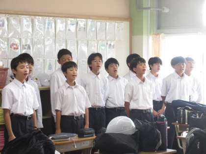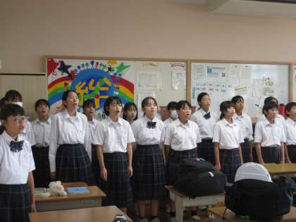 10月7日(月)朝の教室の様子【1年生】 公開日 2024/10/07 更新日 2024/10/07 お知らせ 指揮者・伴奏者が中心となって、朝から素敵な歌声を響かせる1年生。今週金曜日に向け、みんなの「心が1つ」になりつつあります!