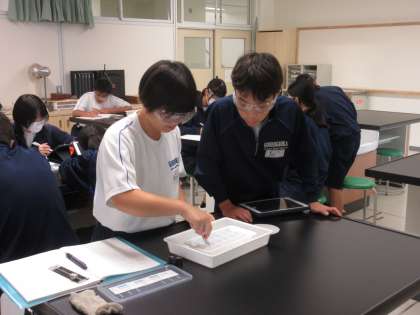 10月7日(月)今日の授業風景 その2 公開日 2024/10/07 更新日 2024/10/07 お知らせ 3年生の理科の授業の続きです。 タブレットで実験結果の写真を撮ったり、ルーペで見たり、ピンセットで触ってみたり・・・。積極的に調べる生徒たち。観察記録をていねいにノートに書き留めているところもよかったです!