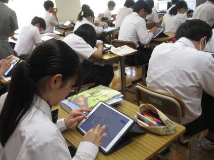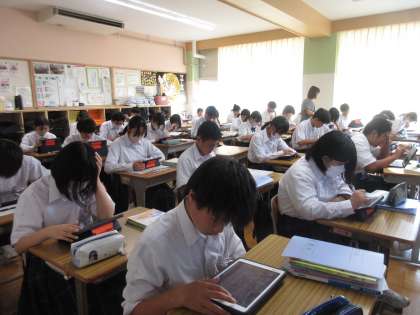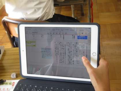 10月7日(月)今日の授業風景 その5 公開日 2024/10/07 更新日 2024/10/07 お知らせ 2年生の国語科の授業です。 「意見文を完成させて読み合おう。」という課題のもと学習を進めていました。教室を訪ねたときは、互いに完成した意見文に、タブレットの付箋機能を使ってコメントを記入しているところでした。付箋に気付いたことをしっかり書き込む生徒たち。頑張っていました!