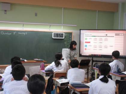 10月8日(火)今日の授業風景 その1 公開日 2024/10/08 更新日 2024/10/08 お知らせ 1年生の英語科の授業です。 教科書の英文を繰り返し読んでいる場面でした。しっかりと声を出して、担当の先生が読む英語についていく1年生の生徒たち。明るく前向きに活動に取り組んでいるので、着実に読み方が上手になっていました!