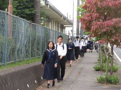 10月21日(月)朝の様子 公開日 2024/10/21 更新日 2024/10/21 お知らせ 季節が進み、寒さを少し感じる月曜日の朝を迎えています。生徒たちの服装も、ワイシャツだけでなく上着着用をしている姿を多く見かけました。体調を崩しやすい時期です。体調管理に十分気を付け、元気に学校での生活を送ってほしいと思います。