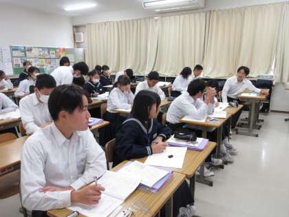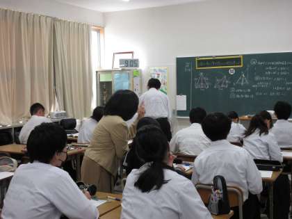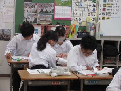 10月21日(月)今日の授業風景 その6 公開日 2024/10/21 更新日 2024/10/21 お知らせ 3年生の数学科の授業です。 「三角形の角の二等分線と比の関係を考えよう。」という課題のもと、集中して学習に取り組む3年生。証明の問題にチャレンジ中でした。自分で根気強く考えたあと、近くの友達と考えを交流させていました。難しい問題にも粘り強く取り組む3年生です!頑張っていました!