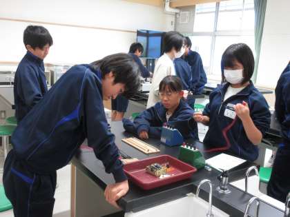 11月5日(火)今日の授業風景 その4 公開日 2024/11/05 更新日 2024/11/05 お知らせ 2年生の理科の授業の続きです。 グループで協力し合う生徒たちの姿が、理科室でたくさん見られました。積極艇に自分たちの考えを交流し合う姿がいいですね!