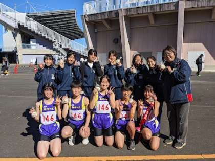 県総体中学校駅伝大会に出場した女子駅伝チーム。県全体で38位です!