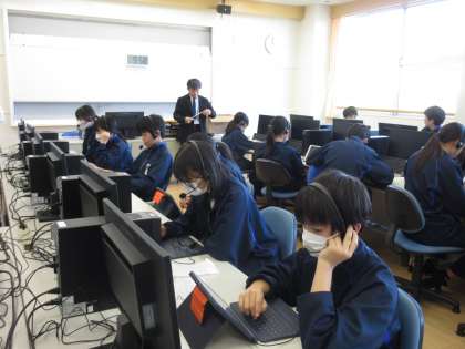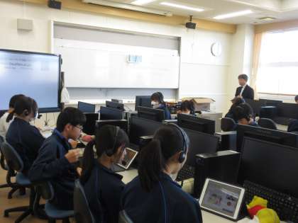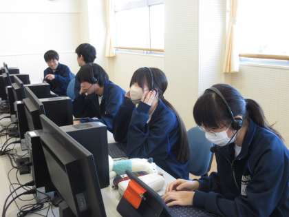 11月8日(金)今日の授業風景 その3 公開日 2024/11/08 更新日 2024/11/08 お知らせ 2年生の英語科の授業です。 後日、実施されるオンライン英語テストの練習と確認に取り組んでいました。コンピュータ室での活動です。集中して活動に取り組む2年生。ヘッドフォンとマイクをつけての活動に、本格的な英語の学習(テスト)の雰囲気を感じました。