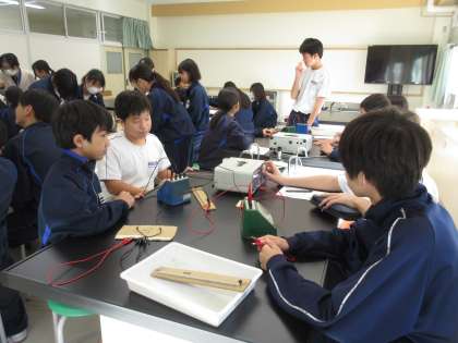 11月8日(金)今日の授業風景 その7 公開日 2024/11/08 更新日 2024/11/08 お知らせ 2年生の理科の授業です。 回路をつくり、電流と電圧についての実験に取り組んでいました。グループごとの協力体制がバッチリな2年生!素晴らしい!