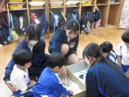 11月12日(火)保育実習 その2【3年生】 公開日 2024/11/12 更新日 2024/11/12 お知らせ 幼稚園児にやさしく接する生徒たち。「お兄ちゃん!」「お姉ちゃん!」と園児から、たくさん呼ばれていました。楽しく充実した時間になっていました!