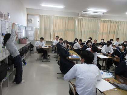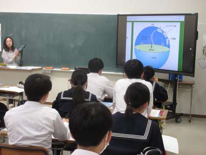 11月13日(水)今日の授業風景 その2 公開日 2024/11/13 更新日 2024/11/13 お知らせ 3年生の理科の授業です。 星空についての学習です。「北の空を見たとき」について考えを広げていました。天球の中から見た場合、外から見た場合について、教室で具体物を使いながら考える生徒たち。担当の先生の位置によって、星の動き方を確認していました。