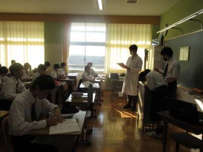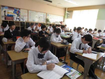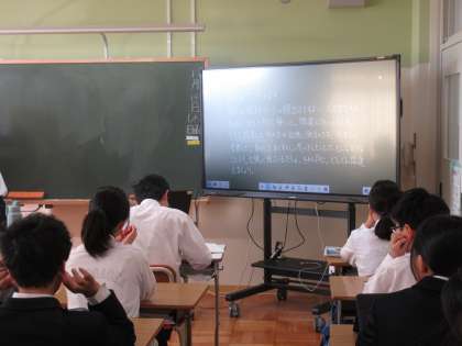 11月14日(木)朝の教室の様子 【1年生】 公開日 2024/11/14 更新日 2024/11/14 お知らせ 1年生の朝の会の様子です。 健康観察の記録をていねいに記入する係の生徒の姿が見られました。担任の先生からの電子黒板に映し出された「励ましのメッセージ」も、よい1日のスタートをきるきっかけとなっています!