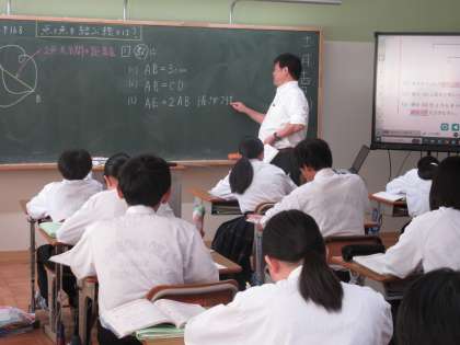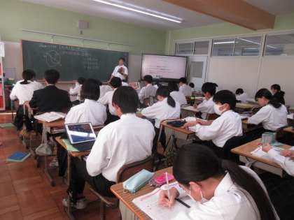 11月14日(木)今日の授業風景 その2 公開日 2024/11/14 更新日 2024/11/14 お知らせ 1年生の数学科の授業です。 「点と点を結ぶ線は?」という課題のもと、学習を進めていました。AB=3cm AB=CD AE=2AB などの意味を確認しながら、今日の学習のイメージを広げていました。