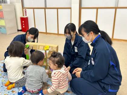 11月15日(金)保育実習 その1【3年生】 公開日 2024/11/15 更新日 2024/11/15 お知らせ 今日の保育実習は、二三ケ丘幼稚園さんとアネシスナーシング保育園さんです。生徒たちの笑顔はもちろんですが、園児の皆さんと楽しそうな笑顔を見て、今日もよい体験活動になっているなと感じました!