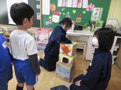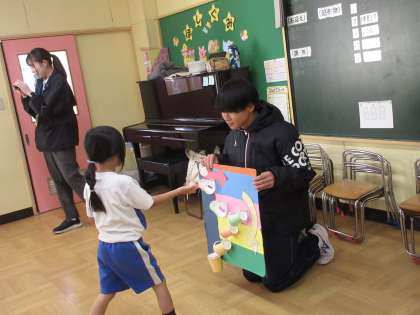 生徒たちの手作り「おもちゃ」が、今日も大人気です!園児の皆さんも大喜びです!