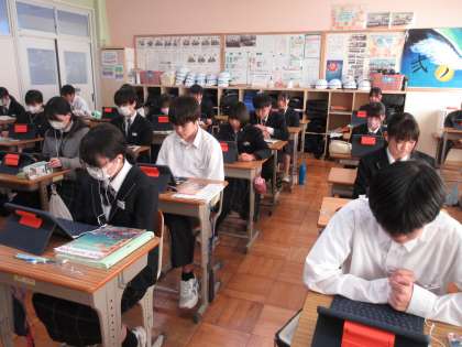 11月25日(月)今日の授業風景 その5 公開日 2024/11/25 更新日 2024/11/25 お知らせ 2年生の英語科の授業の続きです。 生徒たちがオンライン英会話にチャレンジしている姿をもう1ページ公開します!集中して活動に取り組んでいました!