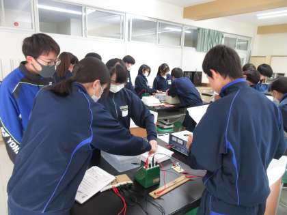11月25日(月)今日の授業風景 その6 公開日 2024/11/25 更新日 2024/11/25 お知らせ 2年生の理科の授業です。 今日の実験は「コイルの周りの磁界」を調べます。生徒たちは回路をつくり、電流を流して実験に取り組みます。グループの仲間で協力して、今日の実験を進める姿が見られました!